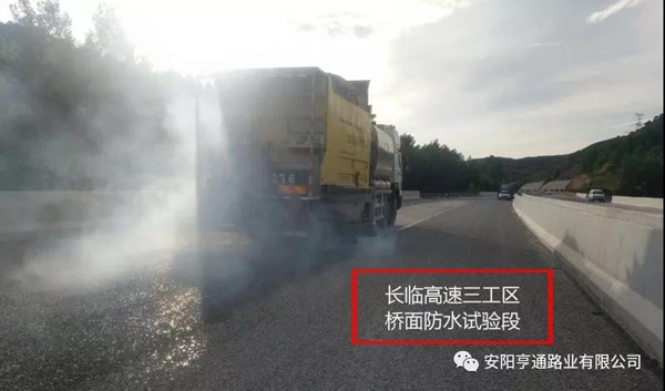 此次橋面防水試驗段獲得了項目、監(jiān)理和指揮部的一致認可,為我公司在長臨高速的防水施工奠定了一個良好的基礎,也為亨通路業(yè)2018年的工程又傳來了一份捷報。